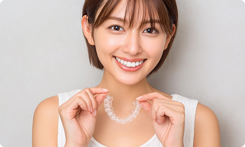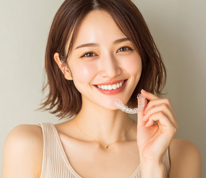 アメリカのアライン・テクノロジー社が開発したマウスピース型の歯列矯正法です。 歯型を3Dスキャンして作成したオーダーメイドのマウスピースを装着し、歯を少しずつ動かして歯並びを改善します。